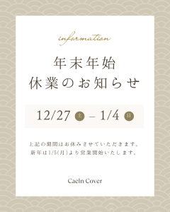 年末はご注文が集中するため、休業前後は発送まで通常よりお時間をいただく場合があります。