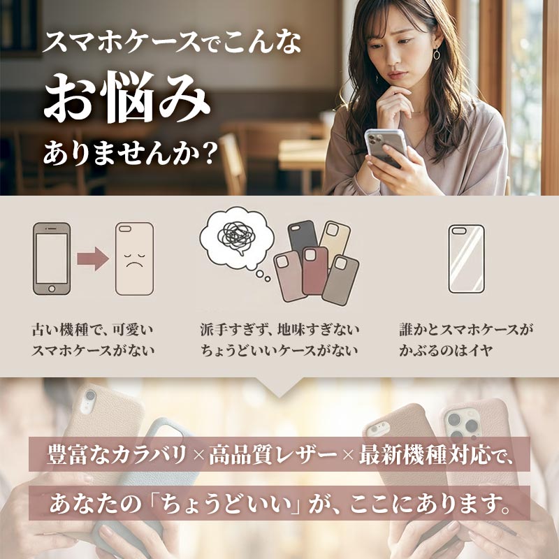 - ・iPhone用のケースばかりで、自分のAndroid機種に合うおしゃれなデザインがなかなか見つからない…