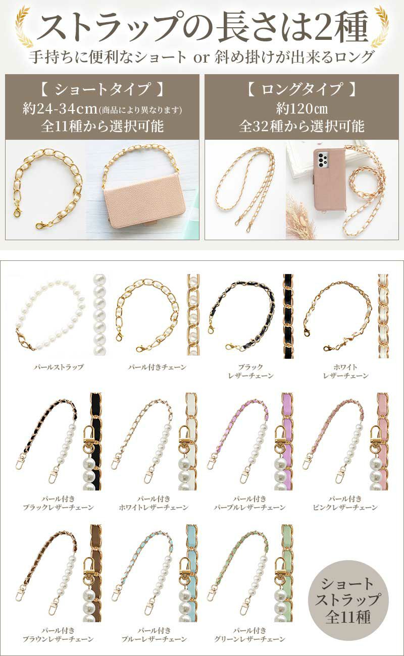 スマホケース手帳型 スマホ ケース iphone カバー Android アンドロイド レザー 革 皮 PU 携帯 カード ベルト ストラップ穴 スタンド キルト 韓国 パール チェーン ショートストラップ スマホケース 手帳型 全機種対応【くすみレザーorキルティング手帳ケース×ショートorロングストラップ】スマホショルダー ショルダー タイプ スマホカバー 縦 横 肩掛け 斜めがけ 首掛け ギフト メール便送料無料 受注生産